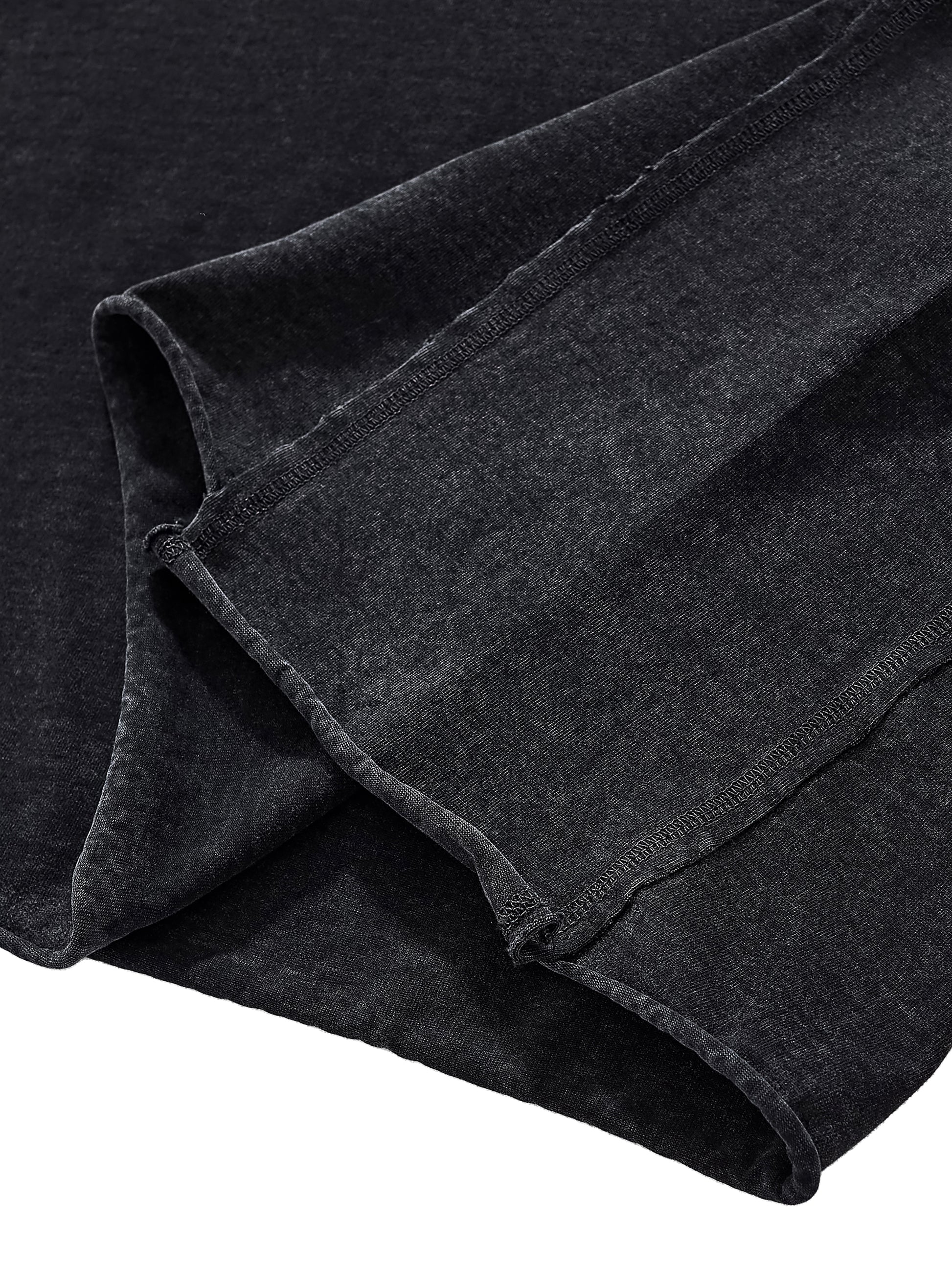 Raw Edge Snow Washed Boxy T-Shirt with distressed Jesus on the cross and "prayer in front of a crucifix" on the back. In Christ clothing collection of catholic symbolism in the right context promoting prayer and veneration.